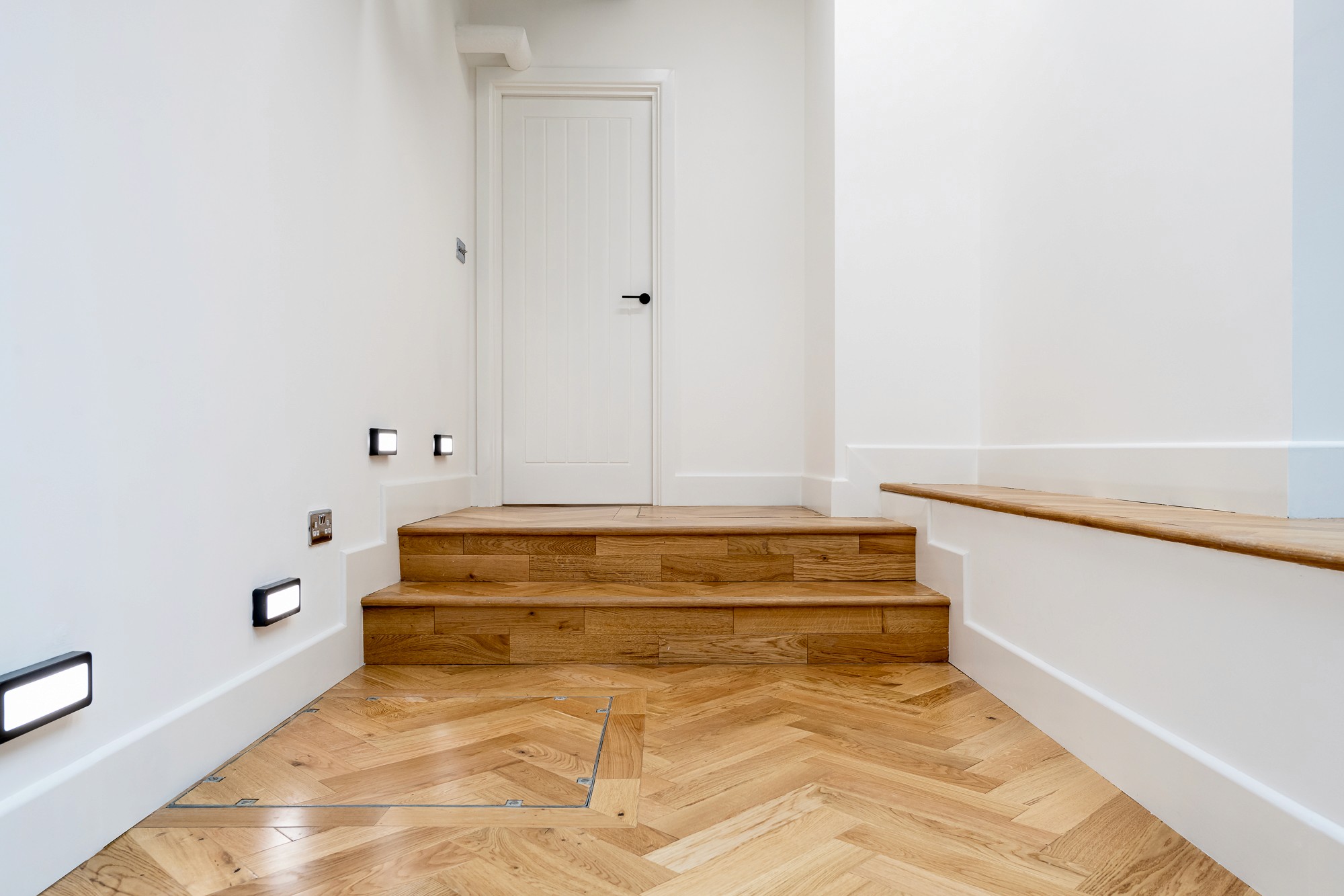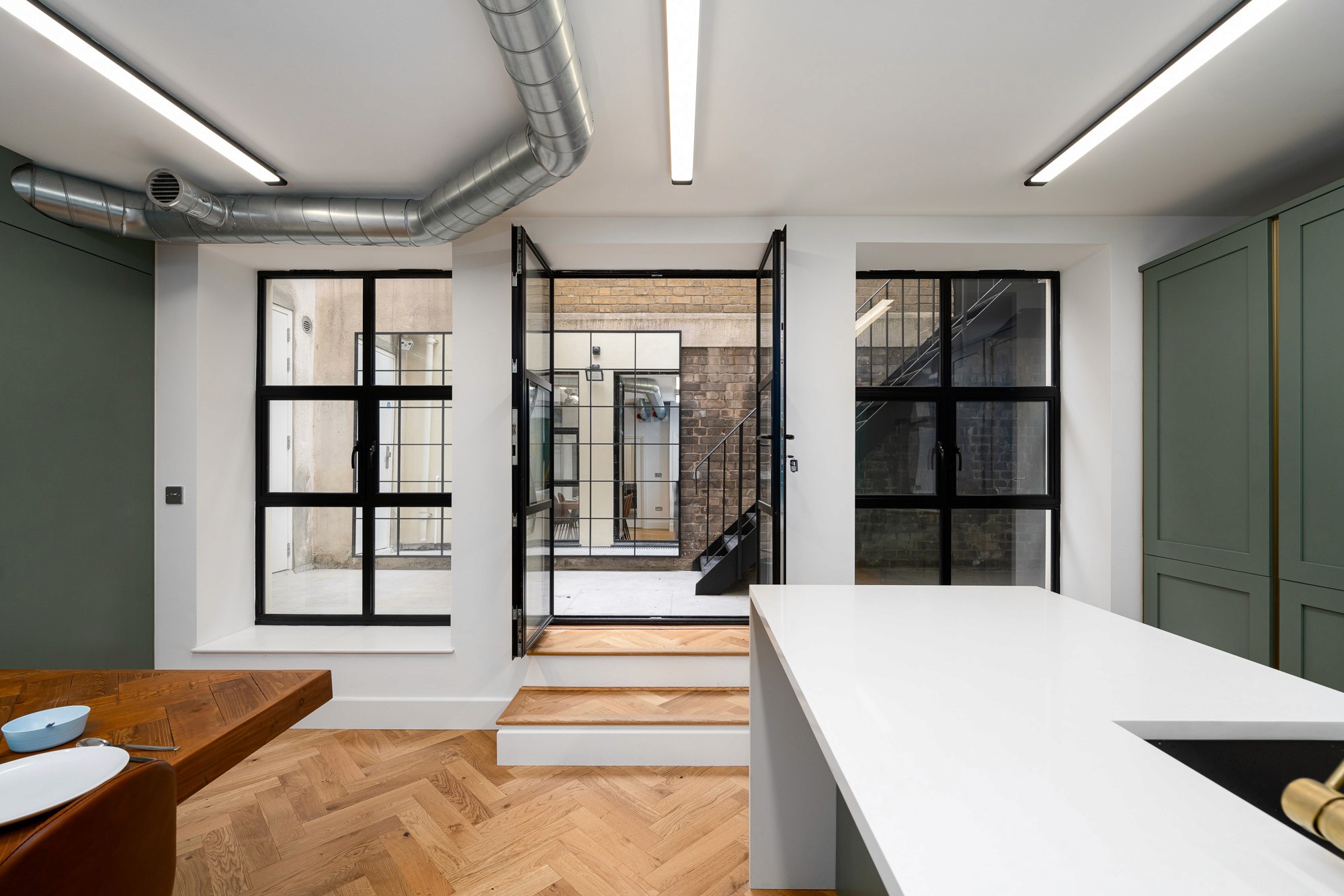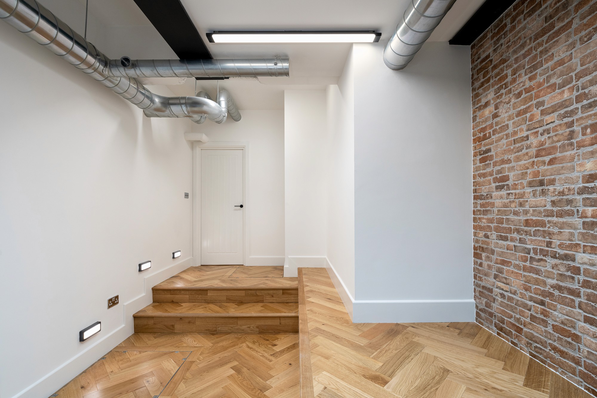 This project reimagined a basement storage space into a stylish and functional apartment, featuring an open-plan design, sleek finishes, and optimised lighting.