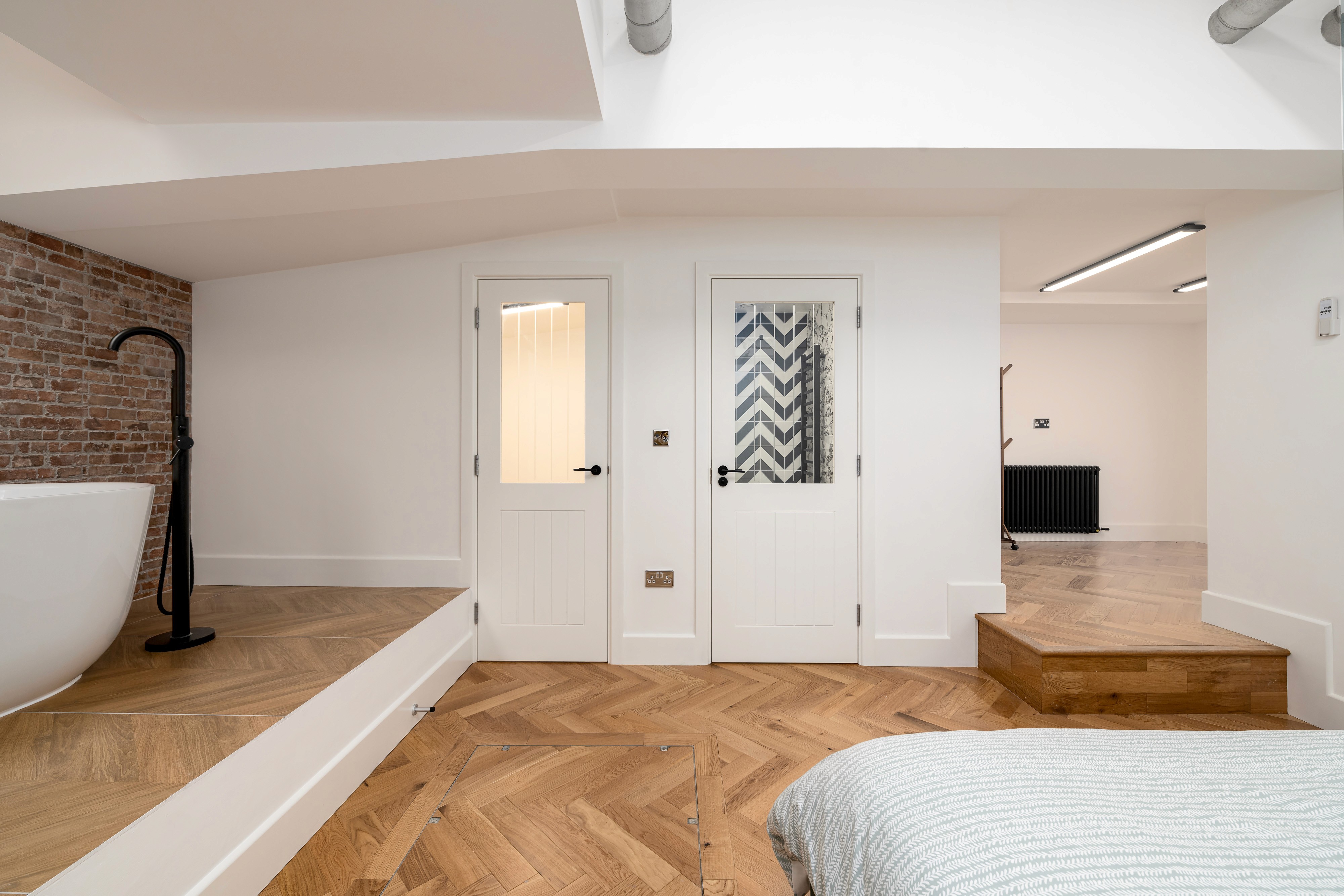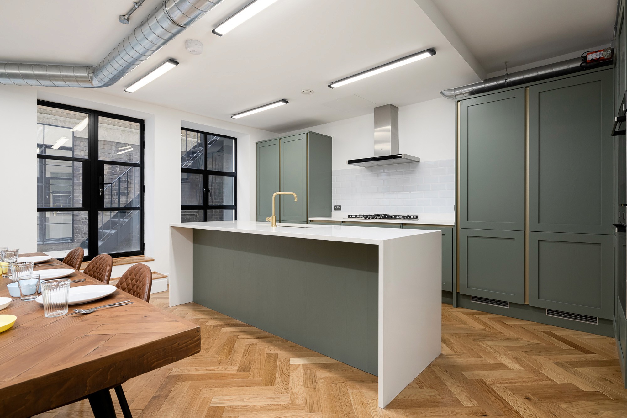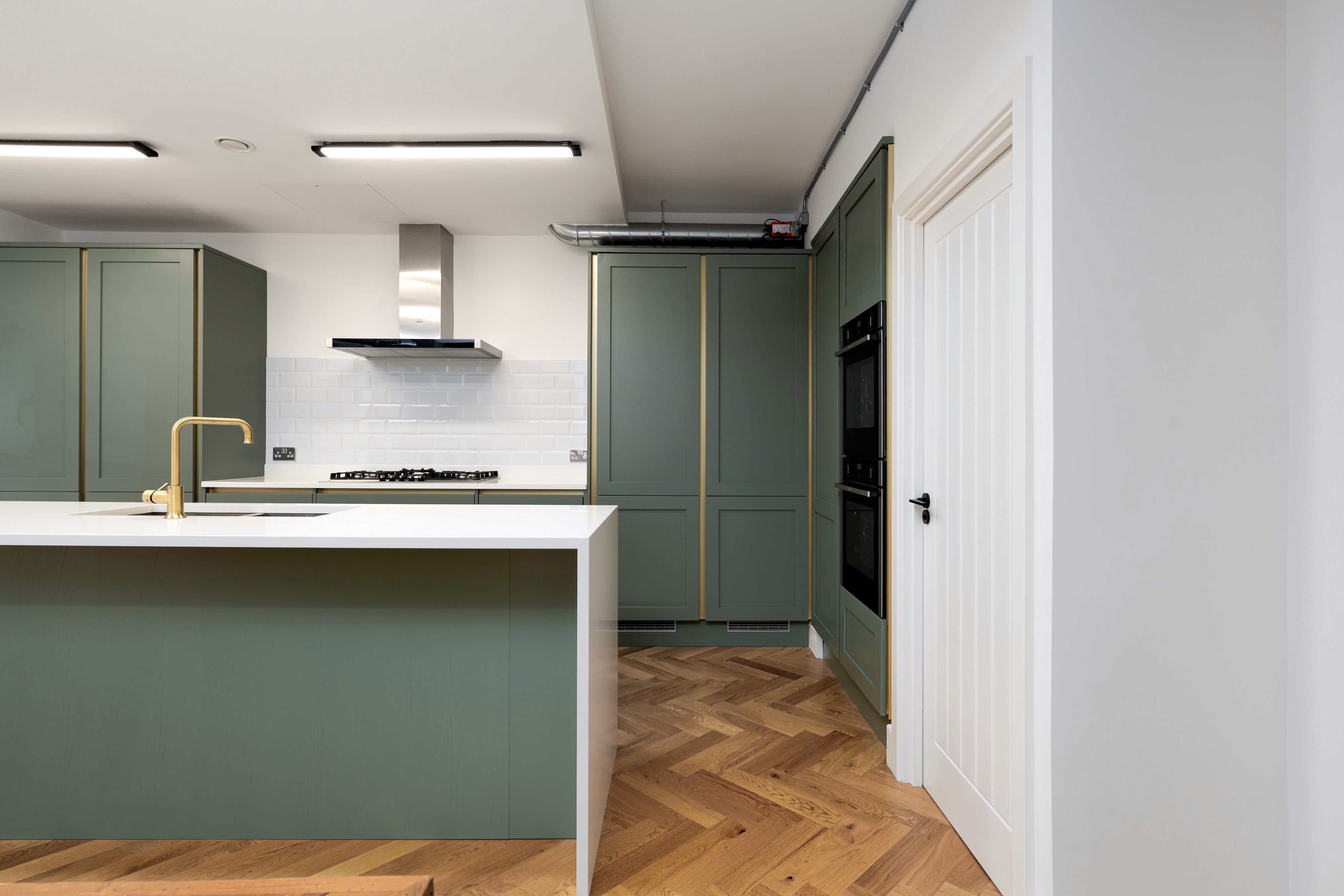 This project reimagined a basement storage space into a stylish and functional apartment, featuring an open-plan design, sleek finishes, and optimised lighting.