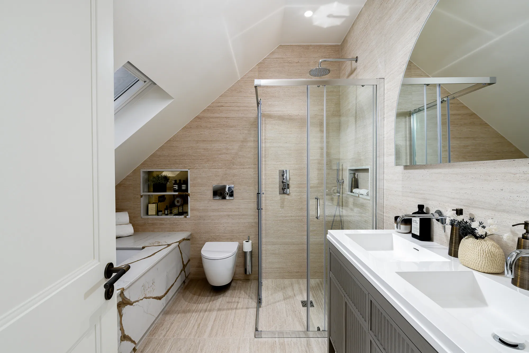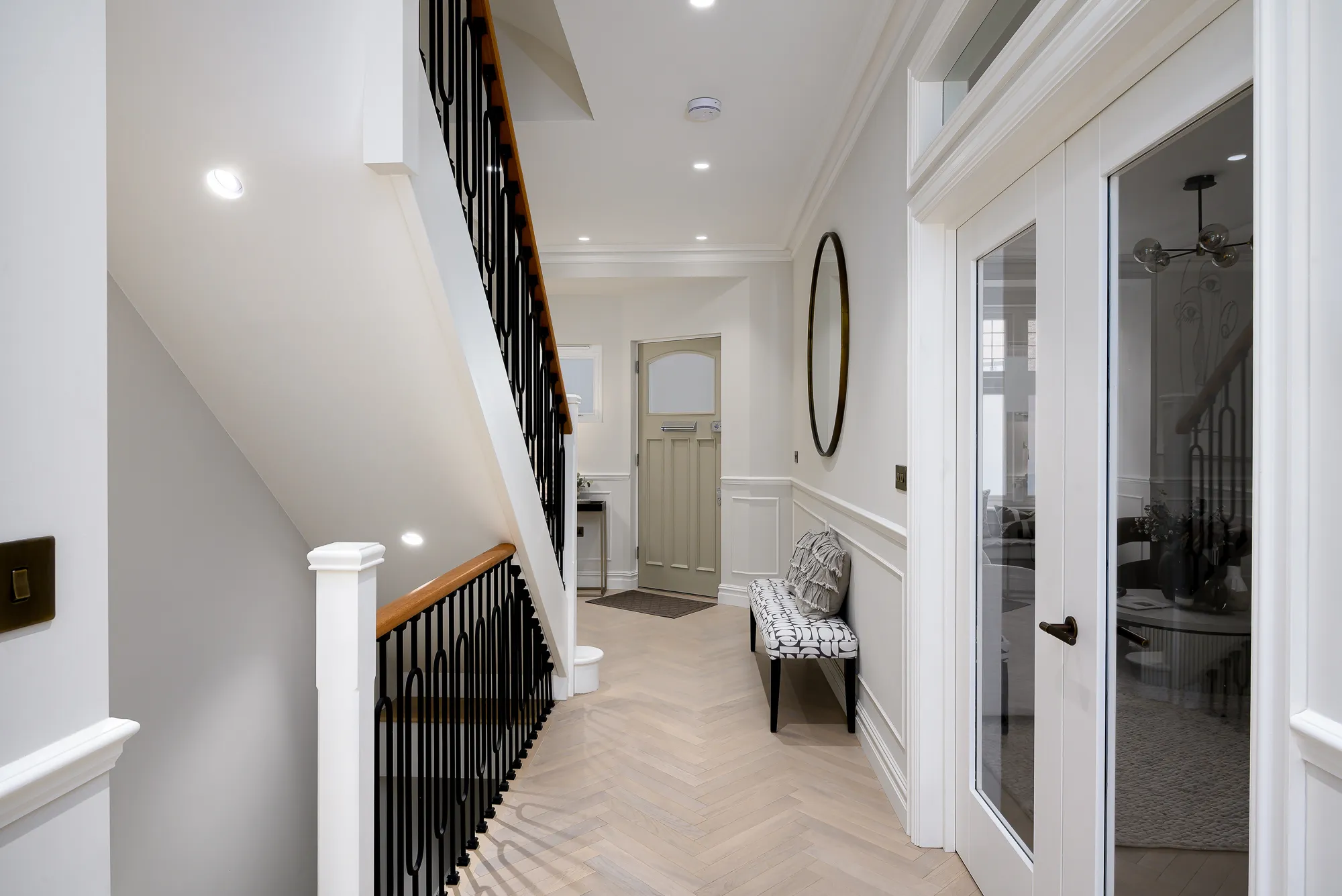 This project in Parsons Green involved a complete strip-out refurbishment, taken back to bare brick and rebuilt to modern standards. The works included a rear extension, full loft conversion, and a bespoke garden outbuilding, all delivered on a full design and build basis by Vicon.