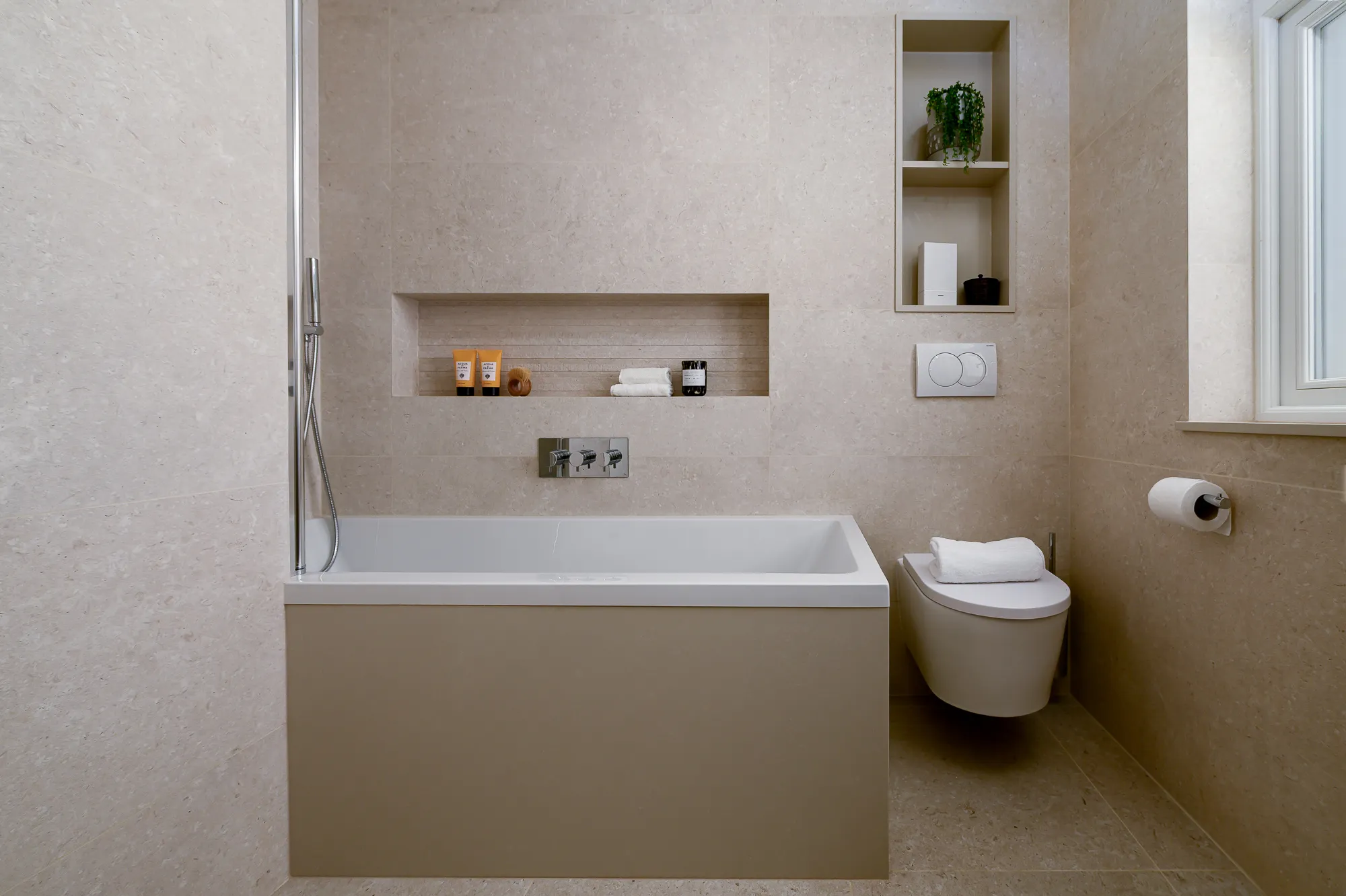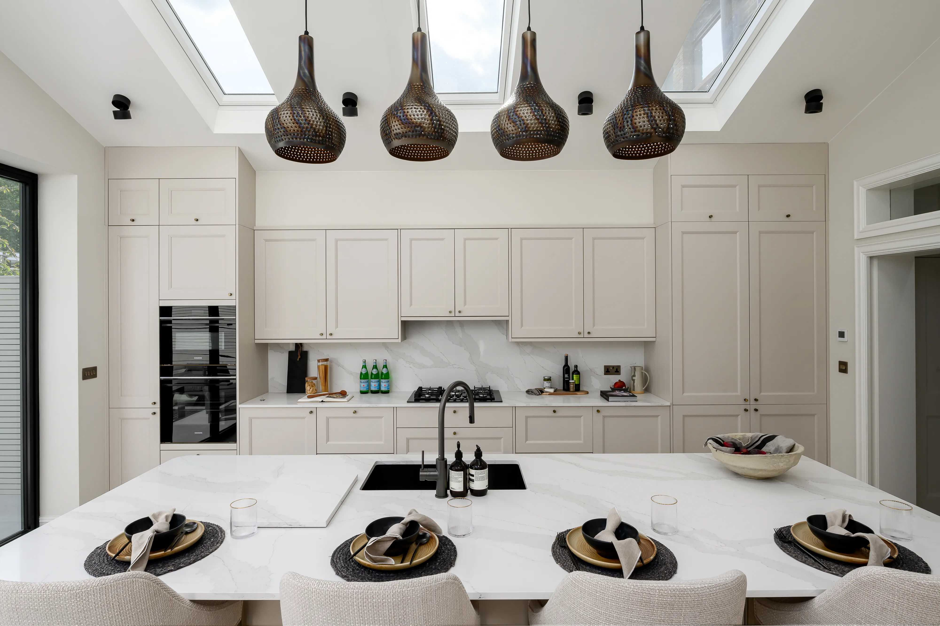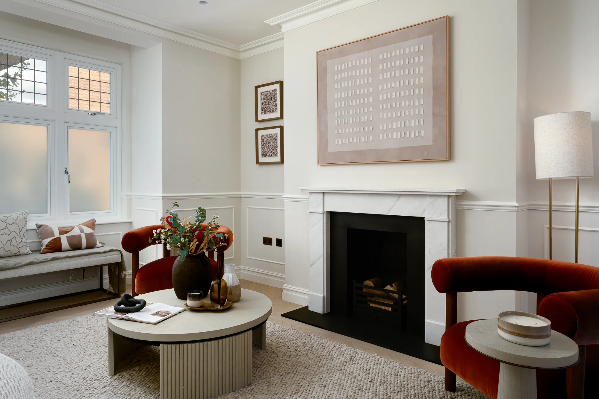 The property was fully insulated to improve energy efficiency and sustainability, with high-quality interior finishes and bespoke joinery completed throughout to create a cohesive, contemporary home.