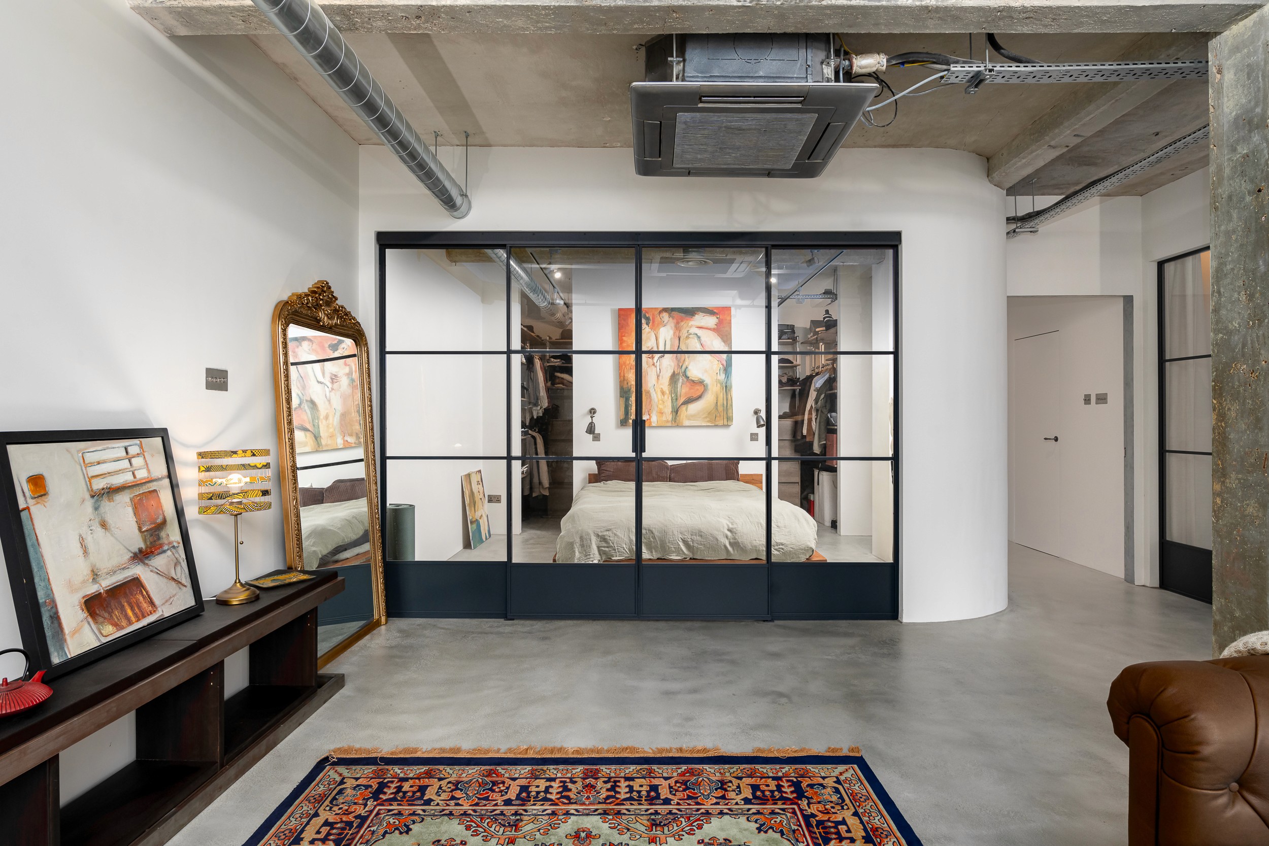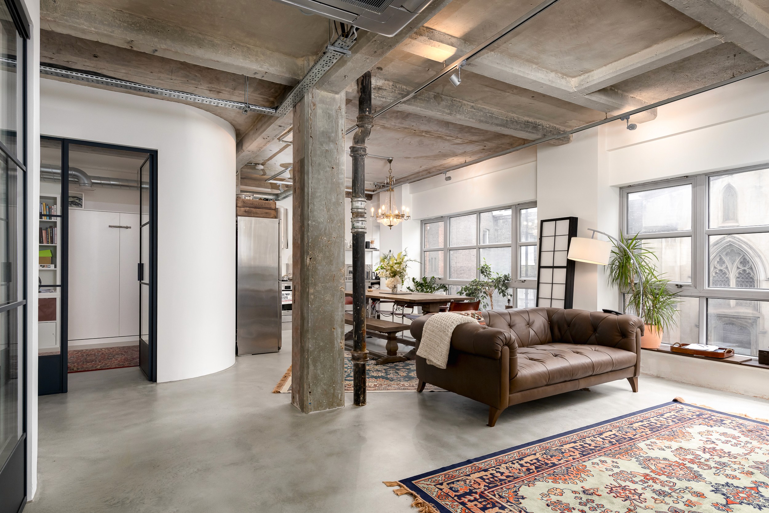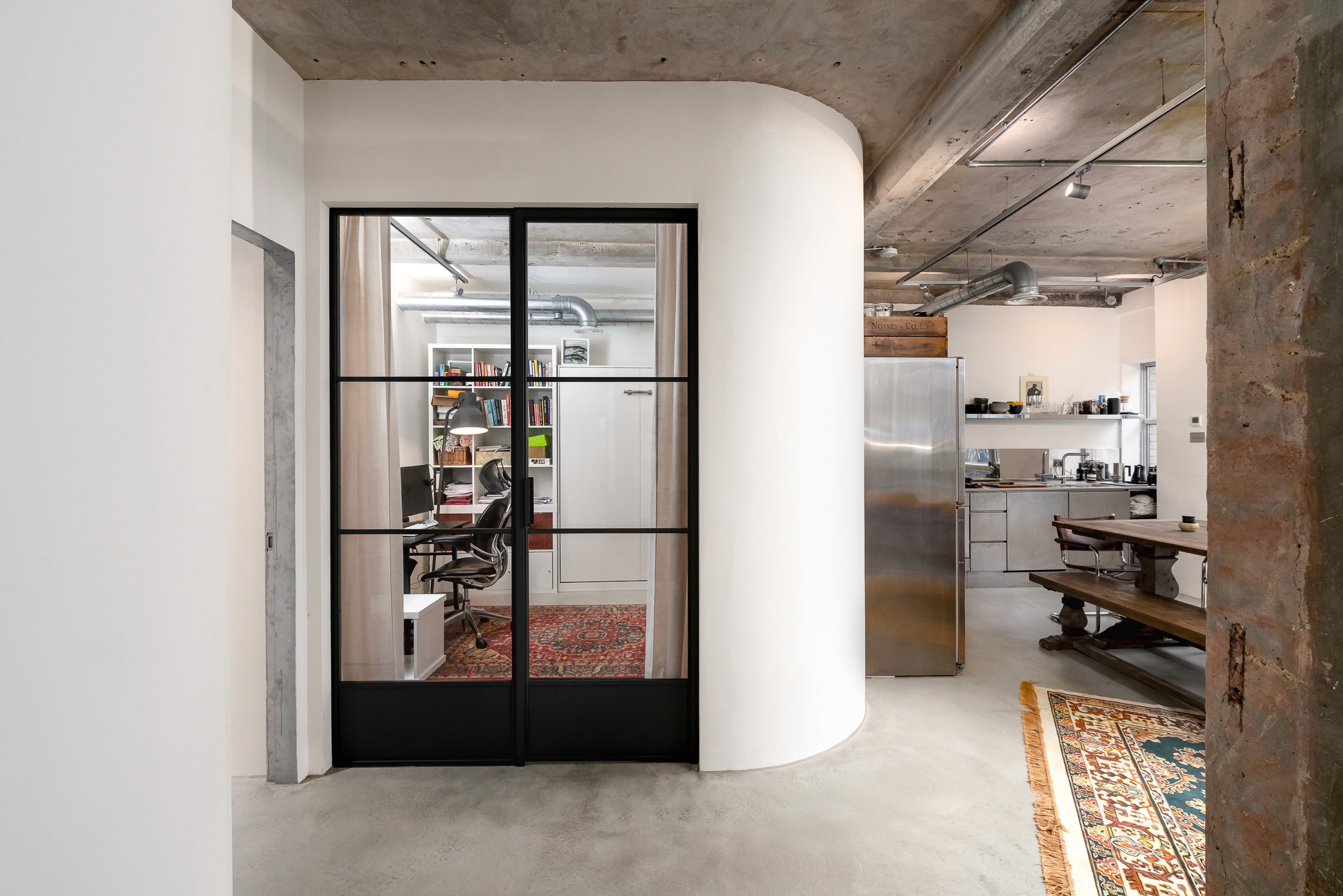 This project involved converting an existing commercial office into a residential apartment, blending industrial design elements with modern living. The space was transformed with concrete features, steel accents, and open-plan layouts to create a stylish, urban-inspired home.